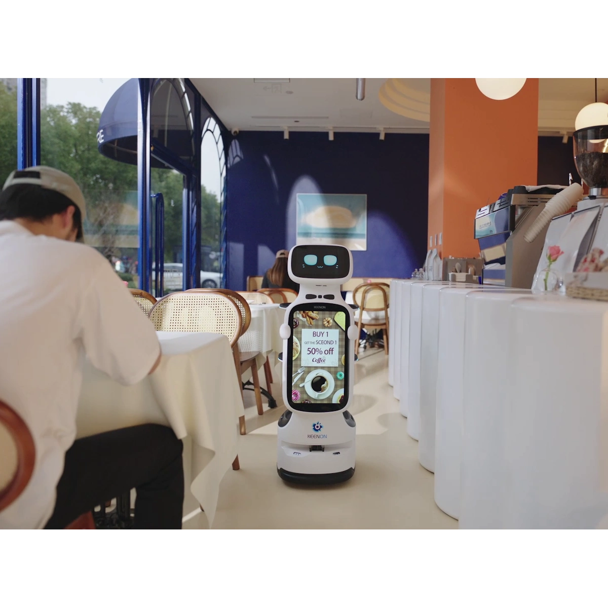 Der Gastroroboter Keenon Dinerbot T11 ist die kleine Schwester des großen T10 Models. Es reichen 49 cm Wegbreite für eine sichere Lieferung oder Werbefahrt. Dort, wo andere Roboter im Trubel steckenbleiben, manövriert sich die elegante Dame mit multimodaler 3D-Sensorik durch Engstellen und Menschengruppen. Der Keenon-T11 eignet sich hervorragend für den Einsatz auf Messen, in engen Bistros, Einkaufsmärkten, Museen und vielen anderen belebten und beengte Objekten.